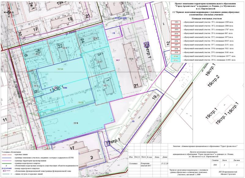2. Адрес месторасположения земельного участка: г. Архангельск, ул. Кутузова, д. 1. Границы земельного участка 29:22:031608:ЗУ7 определены проектом межевания территории муниципального образования "Город Архангельск" в границах ул. Репина, ул. Мусинского, и ул. Партизанской площадью 3,3799 га, утвержденным распоряжением Главы городского округа "Город Архангельск" от 21.01.2022 № 259р: