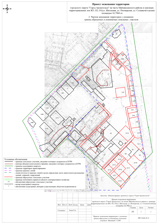 в границах территориальных зон Ж3, О2, О1 (ул. Школьная, ул. Пионерская, ул. Сольвычегодская) площадью 16,7968 га, утвержденным постановлением Главы городского округа "Город Архангельск" от 08.02.2024 № 169: