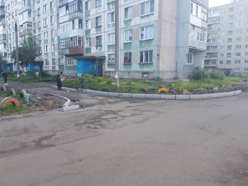 В зоне благоустройства дворовой территории предусмотрено: размещение детских площадок с установкой малых форм и демонтаж старого оборудования (детского игрового и спортивного оборудования, старого металлического забора). Запланирована реконструкция покрытия хоккейной коробки.