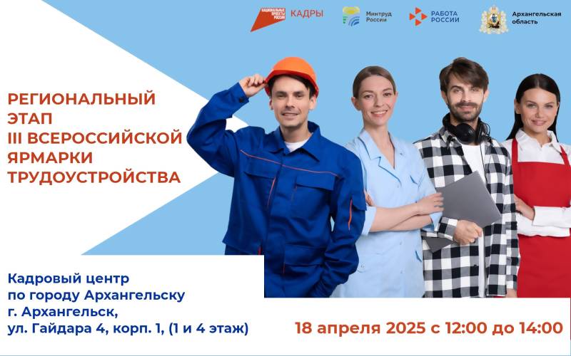 Мероприятие состоится 18 апреля с 12:00 до 14:00 в кадровом центре по городу Архангельску: ул. Гайдара, д. 4, корп. 1
