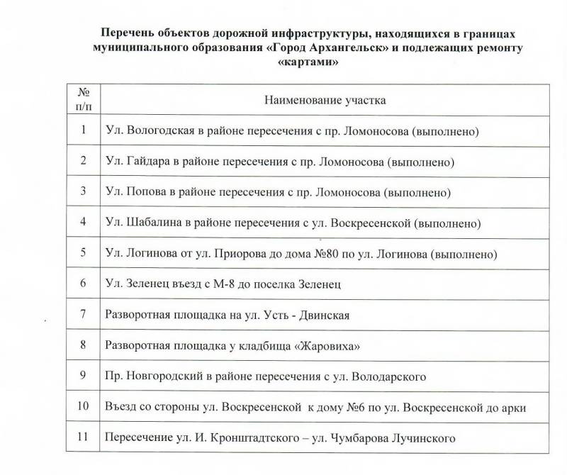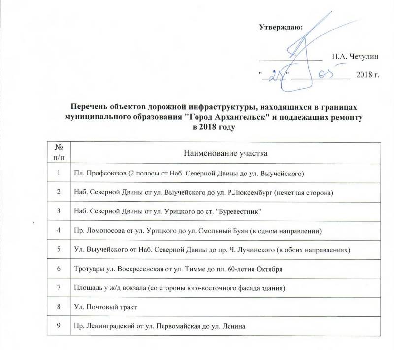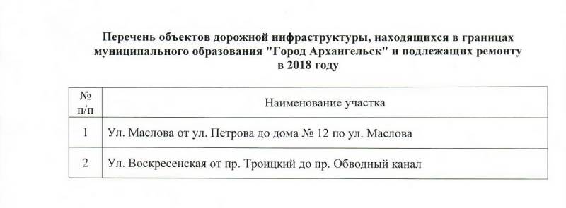 Объекты дорожной инфраструктуры, подлежащие ремонту в 2018 году