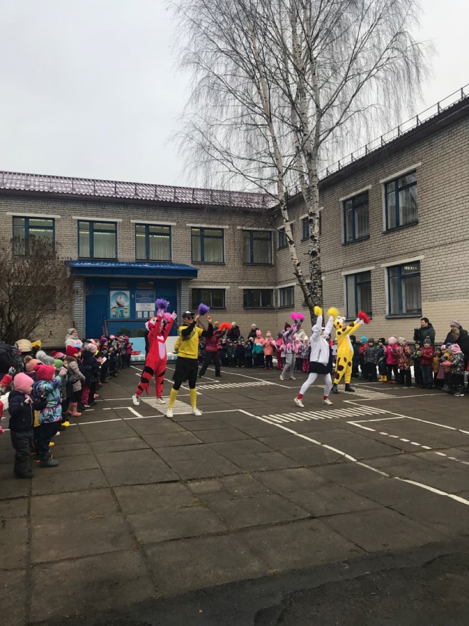 Вместе с ребятами дружно сделали зарядку герои мультфильма "Лео и Тиг", Спортик и Олимпиаша.