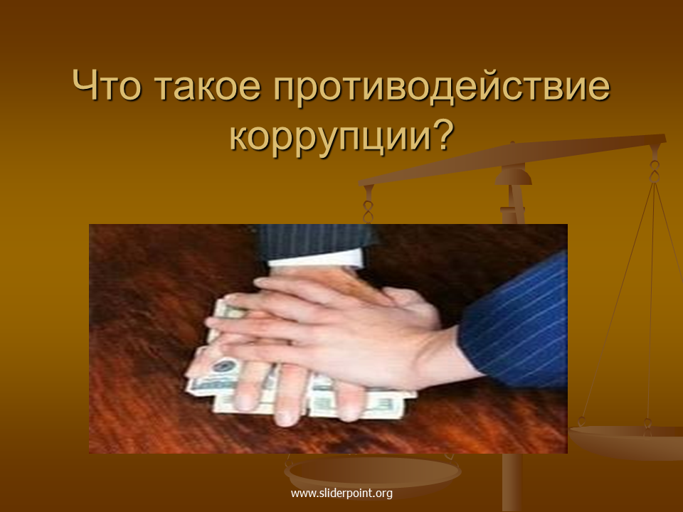 В соответствии с Федеральным законом "О противодействии коррупции" под коррупцией понимается злоупотребление служебным положением, дача взятки, получение взятки, злоупотребление полномочиями, коммерческий подкуп либо иное незаконное использование физическим лицом своего должностного положения вопреки законным интересам общества и государства в целях получения выгоды в виде денег, ценностей, иного имущества или услуг имущественного характера, иных имущественных прав для себя или для третьих лиц, либо незаконное предоставление такой выгоды указанному лицу другими физическими лицами.