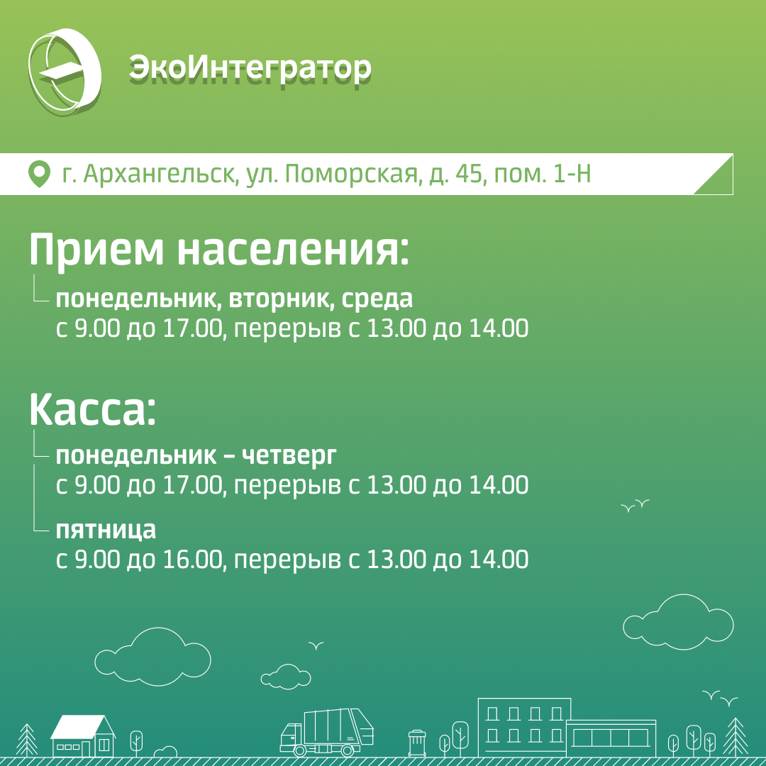С 1 января 2020 года Архангельская область перешла на новую систему обращения с твёрдыми коммунальными отходами (далее - ТКО). С 1 января 2020 года за сбор, вывоз и утилизацию ТКО отвечает региональный оператор ООО "ЭкоИнтегратор".