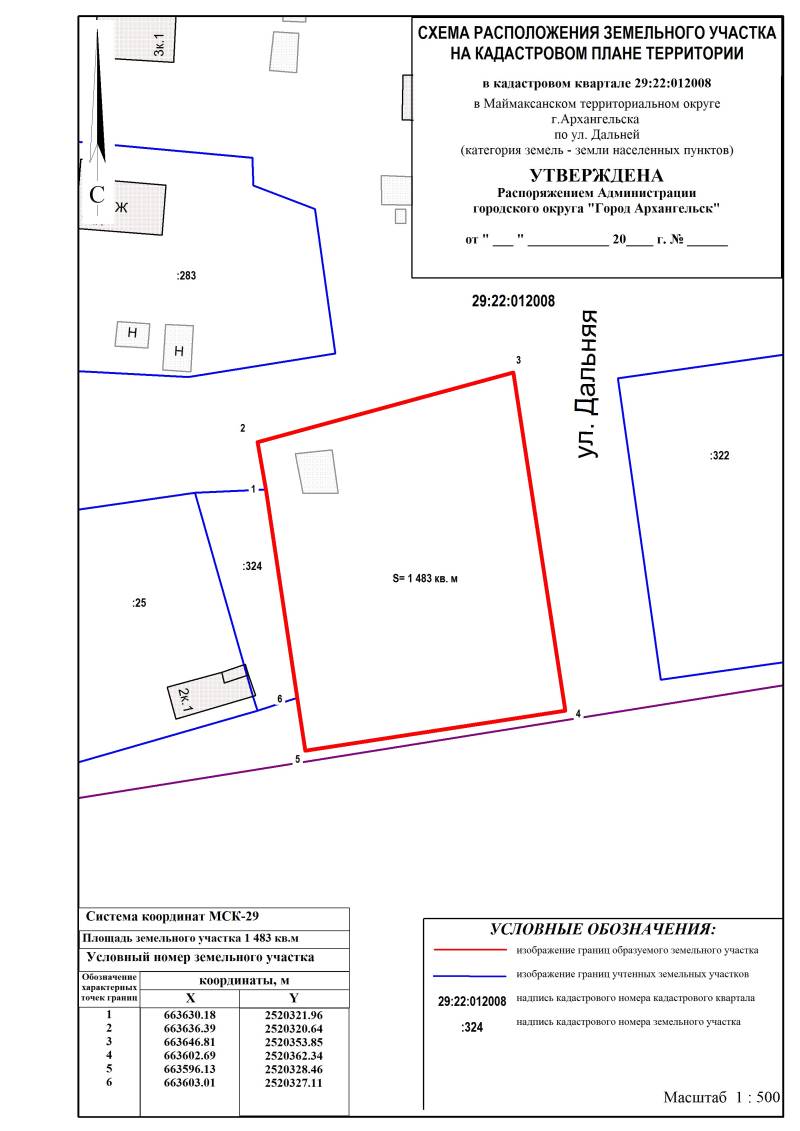 по ул. Дальней в кадастровом квартале 29:22:012008 площадью 1 483 кв. м, для индивидуального жилищного строительства согласно представленной схеме расположения земельного участка.