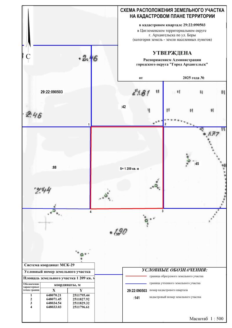 по ул. Боры площадью 1 209 кв. м, для индивидуального жилищного строительства согласно представленной схеме расположения земельного участка.