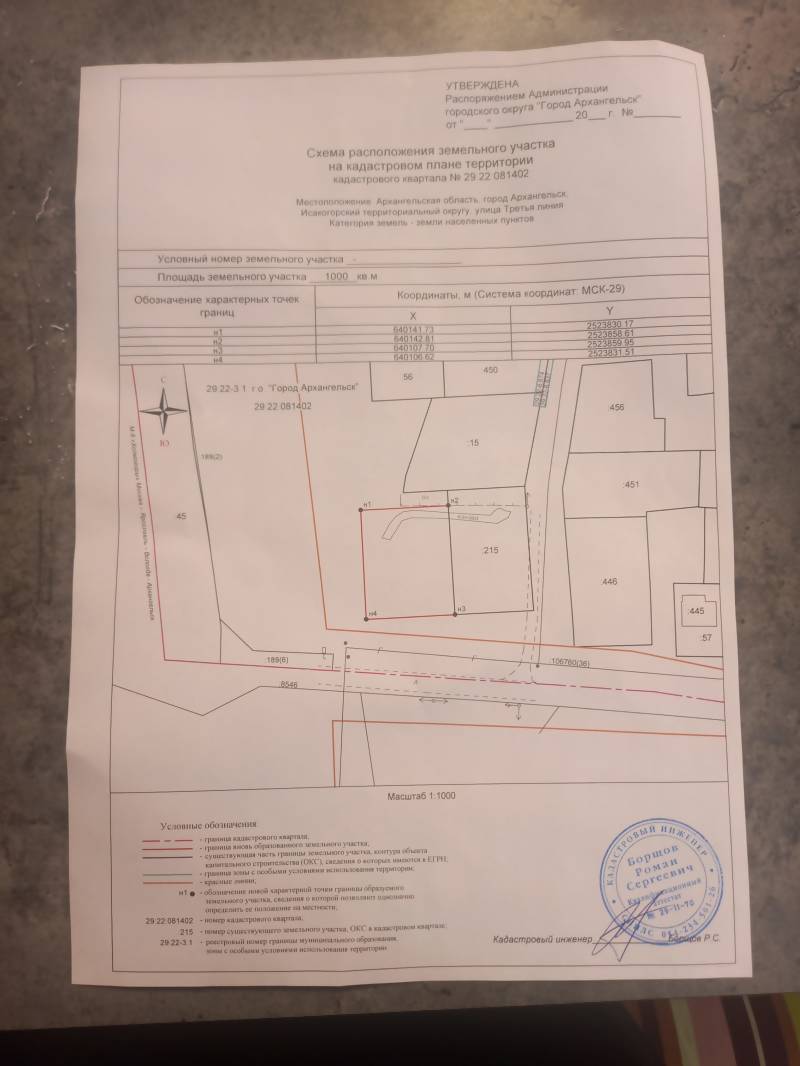 Департамент градостроительства Администрации городского округа "Город Архангельск" извещает о возможности предоставления земельного участка, расположенного в Исакогорском территориальном округе г. Архангельска по Третьей линии площадью 1 000 кв. м, для индивидуального жилищного строительства согласно представленной схеме расположения земельного участка.