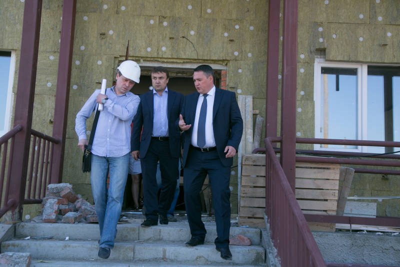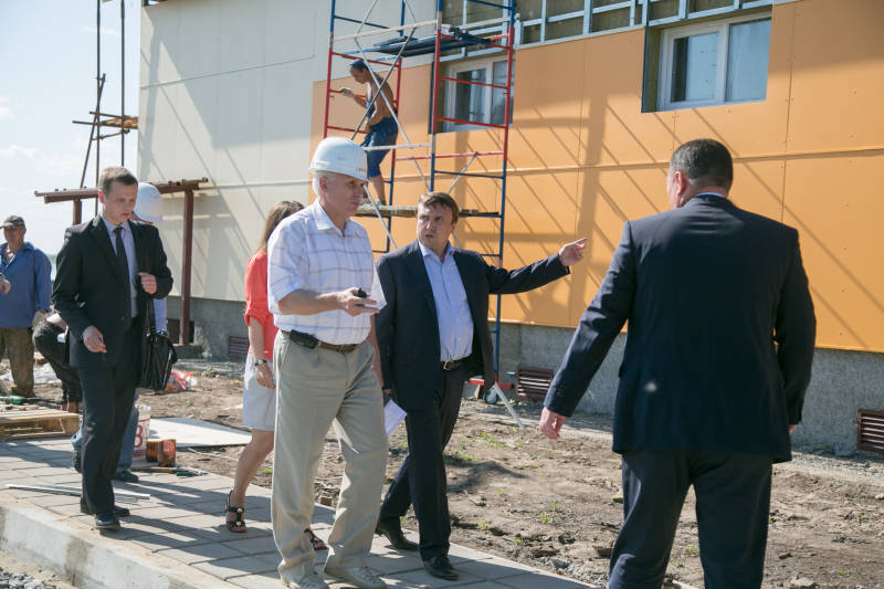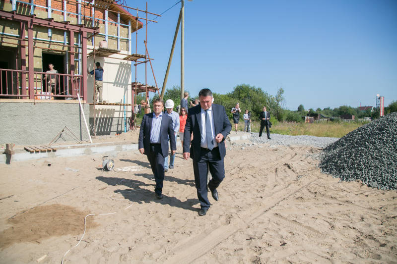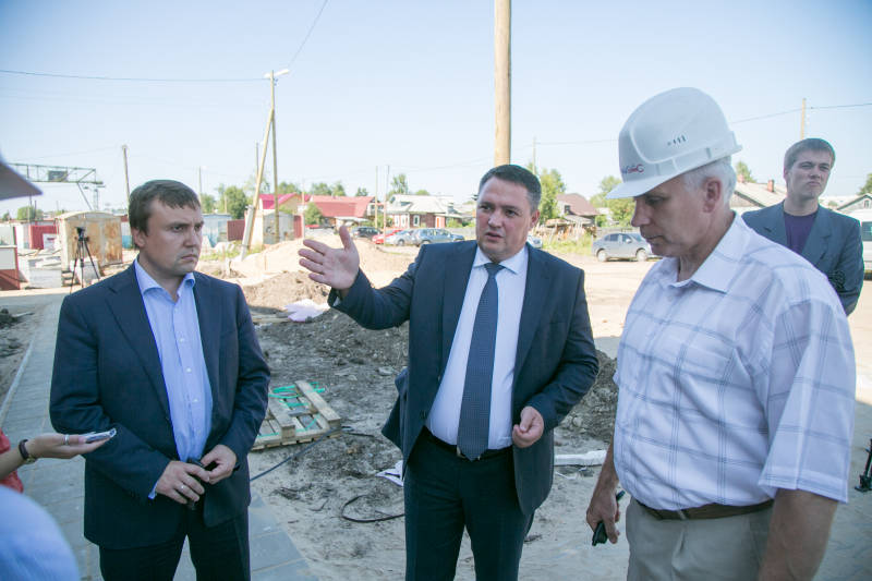 Рабочая поездка председателя городской Думы Сергея Моисеева и зам. мэра по городскому хозяйству Святослава Чиненова на строительство бани на 2-м лесозаводе, 06.08.13