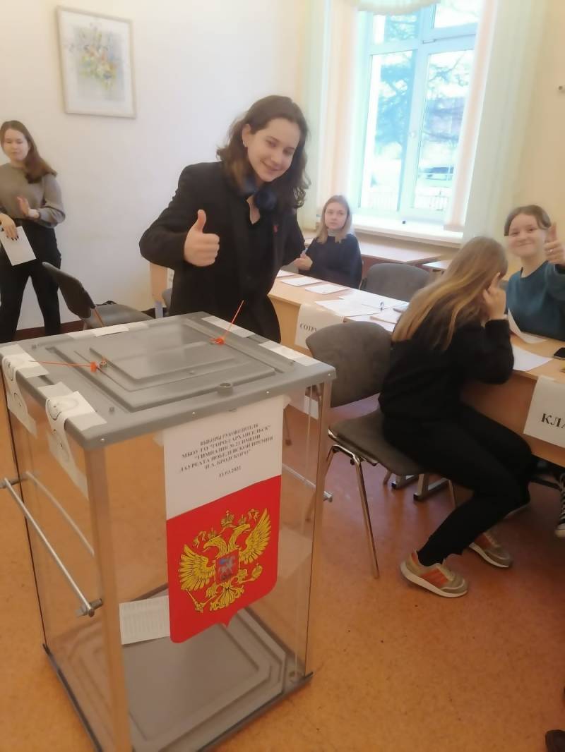 11 марта 2022 года в  08.00 в гимназии  № 21 открылся школьный избирательный участок, состоялось тайное голосование, по итогам которого школьная избирательная комиссия установила итоги. В голосовании приняло участие 43 % школьников и педагогов.